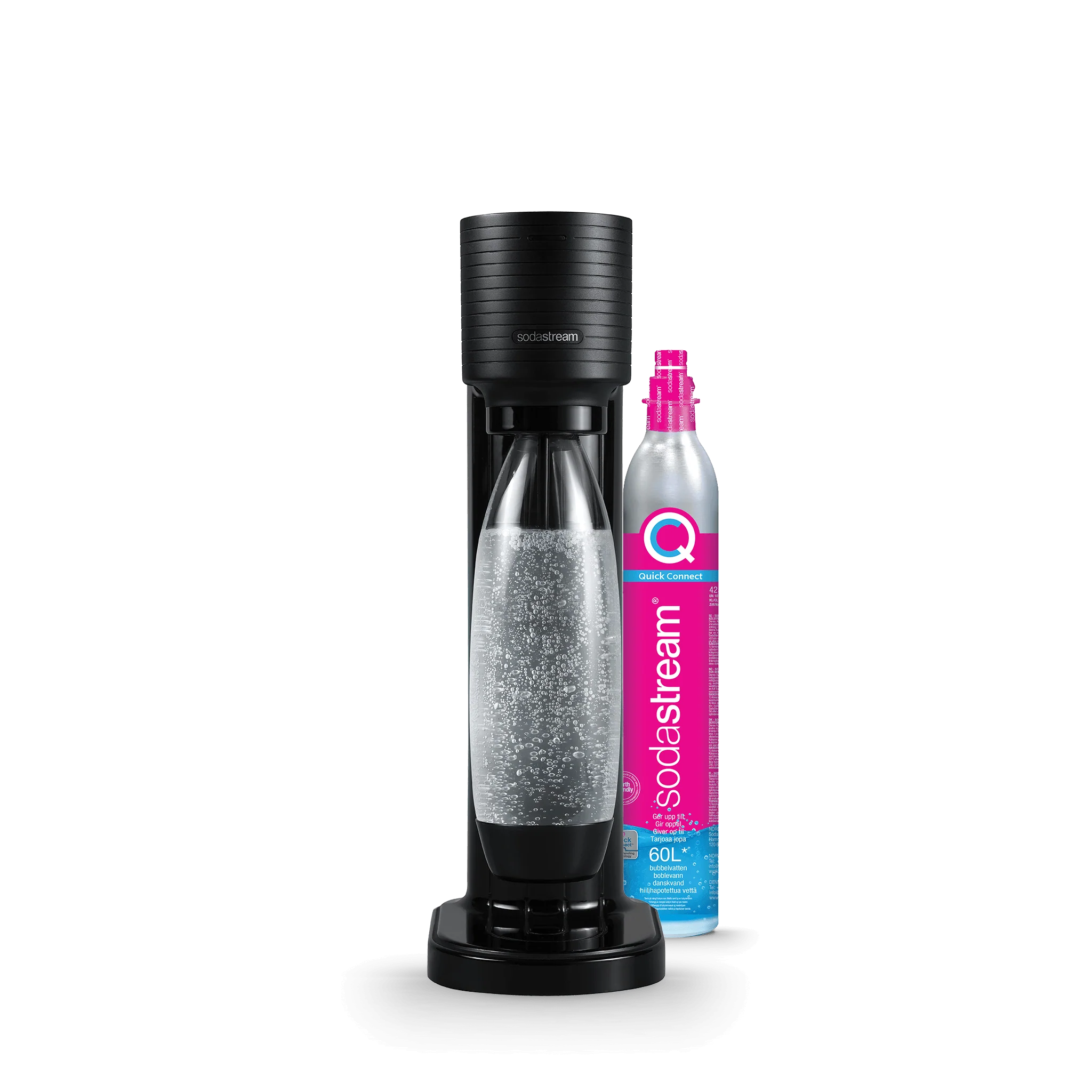 Gaia, SodaStream's simple danskvandsmaskine. Forvandle dit vand til frisk mousserende danskvand på få sekunder. Maskinen har det nye patenterede hurtigkoblingssystem for hurtig og enkel cylinder indsættelse.